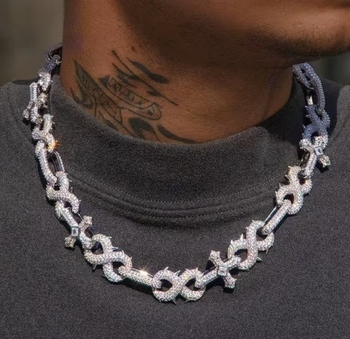 VVS DカラーMoissaniteメンズ用ネックレスホップS925シルバーチェーンキューバリンクブレスレットアイステニスロープ付き高品质ジュエリー